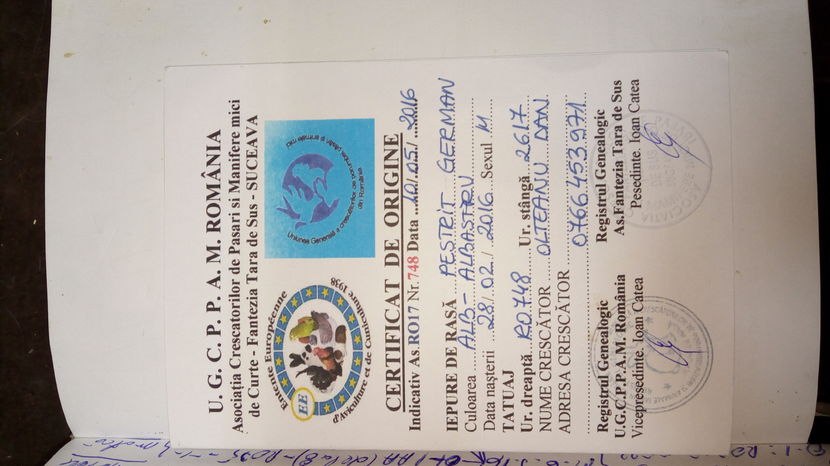 Un nou mascul de reproducție din martie 2016, linie Olteanu Dan, având în spate genetica Bogdan Mircea, Szekely Zoltan si Sorin Toma.